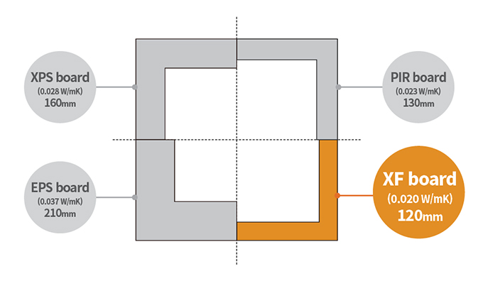 It is the first urethane board insulation material in Korea to secure semi-incombustible performance as a single material even without protective facing material.