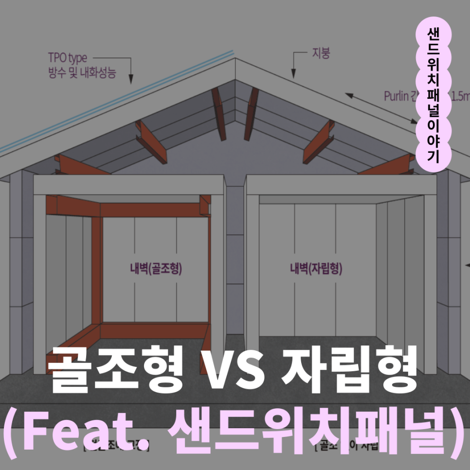 반면 자립형 패널은 패널 자체가 구조체 역할을 하여 별도 골조 없이 자립 시공이 가능합니다.